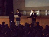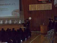 また、生徒会朝礼も行われ、冬休みの過ごし方について、生徒会本部役員から生活リズムや勉強面に関する呼びかけがありました。